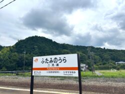 JRの二見浦駅から徒歩20分くらいで浜辺に着きます。