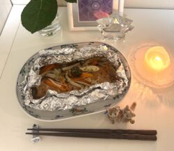 今日の練習の成果は「鮭とキノコのホイル焼き」