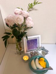 今日のおやつ 秋の味覚、今年の初物の梨と柿✨