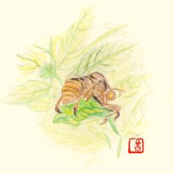 朝、オフィスに向かう途中で昆虫の抜け殻見つけて、嬉しかったので、職場で休憩してる時、コピー用紙にちょこっと描いてみました。ヘタ過ぎてビックリしましたけど。