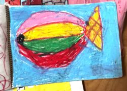 幼稚園の時のお絵描きスケッチブックから。 明るいお魚です👏