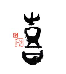 文字の上部分は、楽器の鼓の象形で、下の部分は「口」(サイ)という祝禱を納める器の象形文字。これを合わせて、鼓を打ち鳴らし、神意を喜ばせることを示した文字。