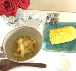 滋養強壮✨野菜スープと今年初のトウモロコシ🌽