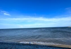 満ち潮の時。潮が引いていると砂浜を歩けます。