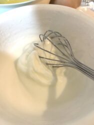 角が立つまでメレンゲを30分勢いよく泡立てる!!