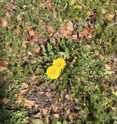 こんなこと願いながら歩いていたら、一足早く咲く春のタンポポ見つけました。