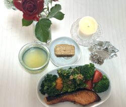 ちょっと焦げちゃったけど、鮭とサンタさんが褒めてくれた人参ケーキ✨