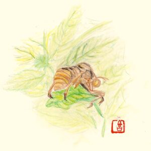 色えんぴつ「過去パラレルを脱皮!?」 おつかれさまです。 朝、オフィスに向かう途中で昆虫の抜け殻見つけて、嬉しかったので、職場で休憩してる時、コピー用紙にちょこっと描いてみました。ヘタ過ぎてビックリしましたけど。 昆虫が